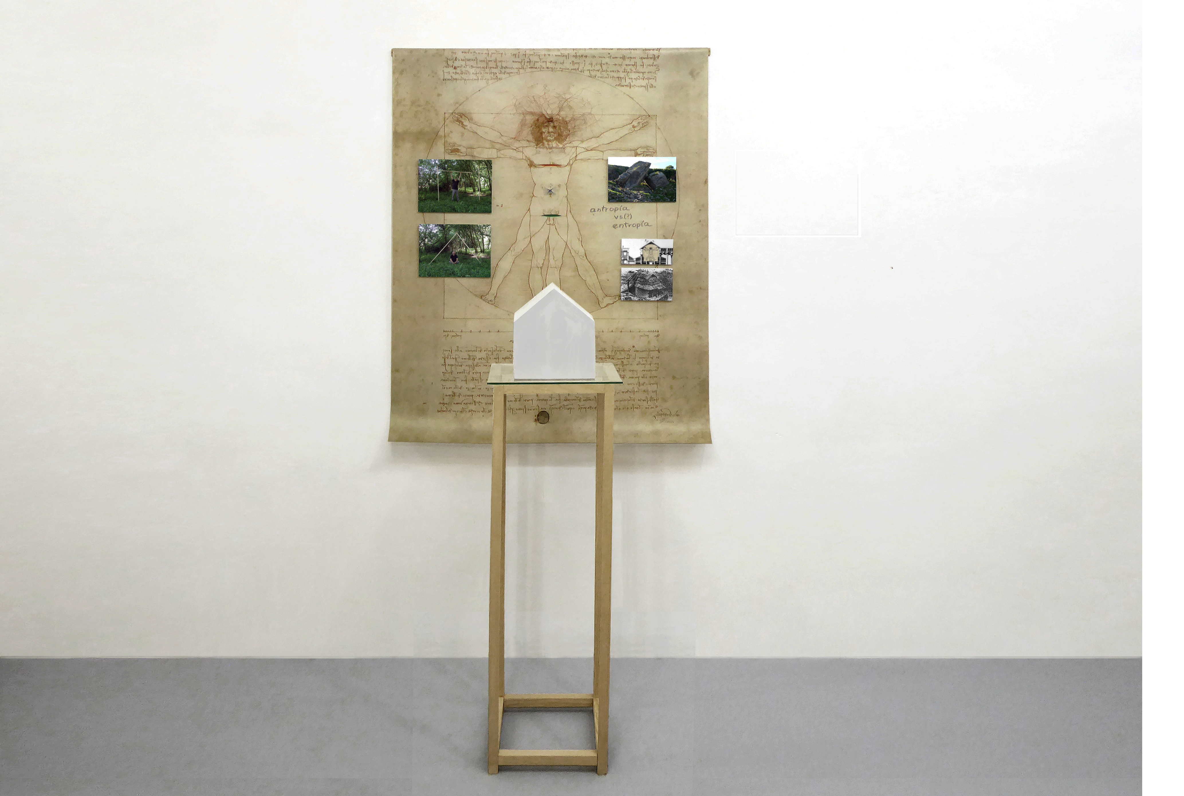 Desde una sensibilidad existencialista, el trabajo de Adel cuestiona los sistemas de representación, medición y racionalización que han dado forma a la visión moderna del mundo. El hombre de Vitruvio, en su lectura renacentista de proporción, orden y centralidad, aparece aquí como un referente descentrado: una figura ya desplazada, múltiple y fractal, que ha perdido toda referencia de escala; un desequilibrio sutil que percibimos en cada una de las piezas, y latente en la muestra en general.