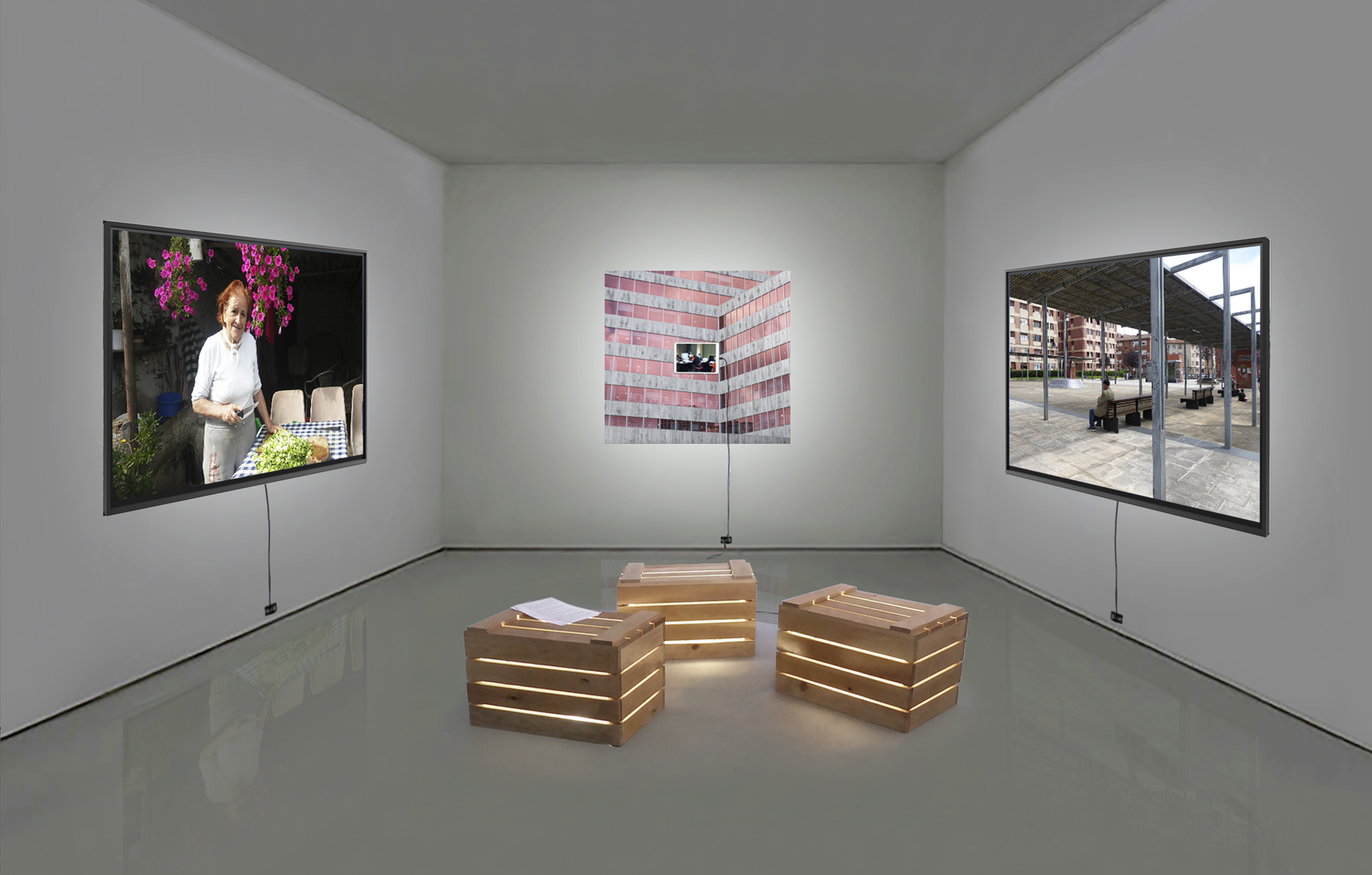 La exposición propone una lectura transversal, articulada a través de una selección de obras que funcionan como nodos conceptuales en su trayectoria. Lejos de una ordenación de las piezas cronológica o evolutiva, éstas operan como hitos mordaces de pensamiento que condensan distintos ámbitos de reflexión crítica en torno a la dimensión humana y su relación con el espacio, el tiempo y la construcción de la memoria.